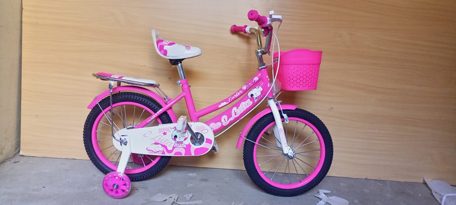 Girls bike Size 16 Front basket Rear seat Training wheels Adjustable seat